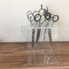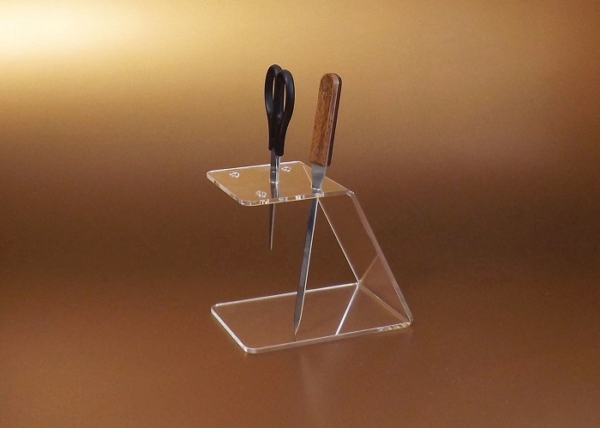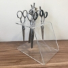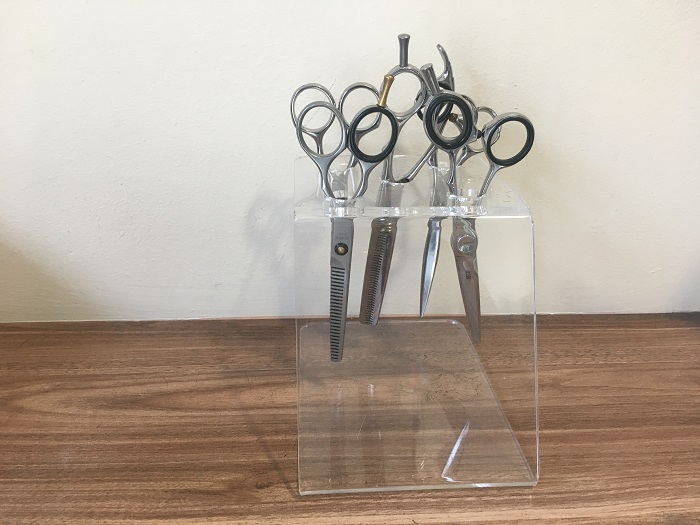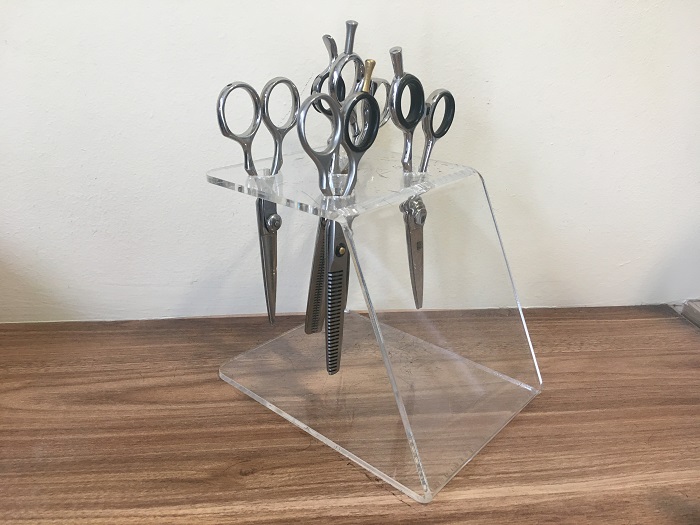 Esztétikus ollótartó plexiből. A fodrászok számára az egyik legfontosabb eszköz az olló. Ezért is olyan fontos, hogy külön helyet szenteljenek nekik, ahol biztonságban lesznek a karcolásoktól és az esetleges sérülésektől. Egy professzionális és esztétikus megoldás az ollók tárolására. 5 db olló tárolására alkalmas. Az ollótartó víztiszta (átlátszó) plexiből készül, de igény esetén kérhető más színben is.