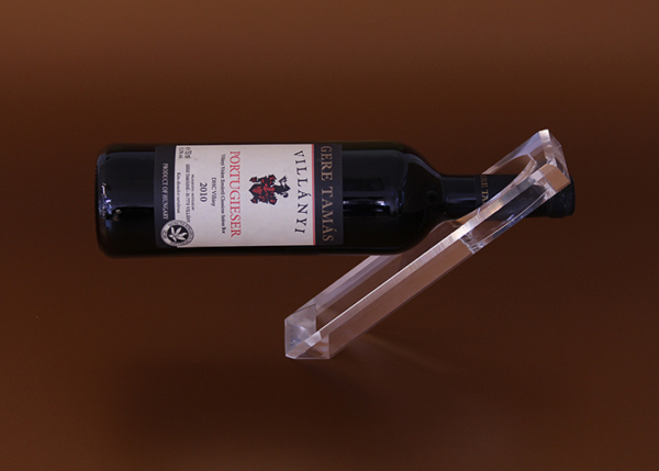 Asztali borosüvegtartó, gravírozható.