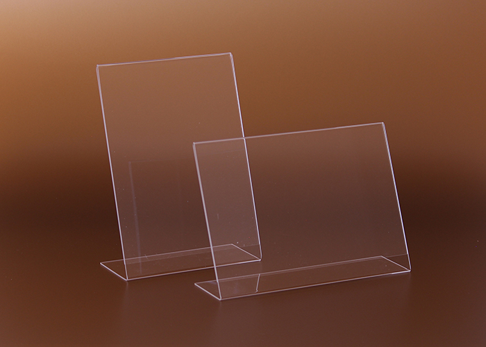 Egyoldalas laptartó, víztiszta plexiből, egyszerű kivitel több méretben, álló vagy fekvő verzióban. Standard méretek.